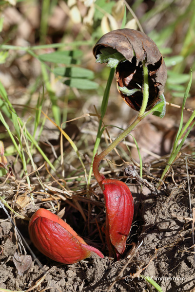 The deciduous oak forests on Bell Springs Mountain include Oregon white oak (Quercus garryana) and California black oak (Quercus kelloggii). These forests undergo dramatic seasonal changes. For about half the year, the trees stand dormant and leafless, revealing a thriving community of mosses, lichens, and mistletoe growing on their trunks and branches. In spring, colorful yellow, orange, and red leaves emerge as the surrounding grasslands burst into vivid shades of green. By summer, the woodland forms a canopy of new leaves, casting dappled light over the wildflowers on the forest floor below. In autumn, the leaves turn yellow and brown as the trees prepare for winter dormancy.
